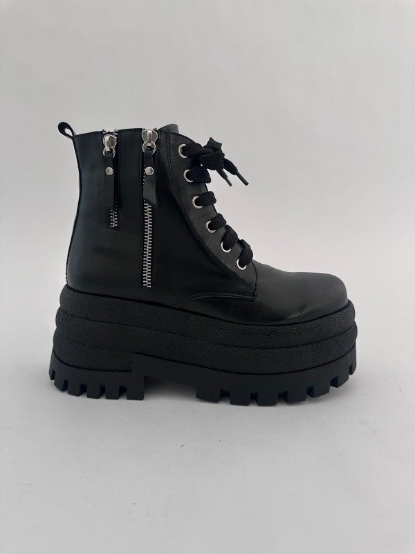 Diseño moderno con doble cierre metálico y base ultra chunky que eleva cualquier look sin esfuerzo.