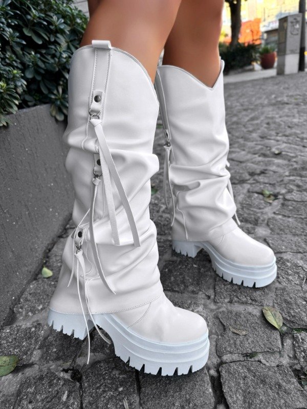 Borcego de caña alta doble con plataforma cómoda y efecto texana.